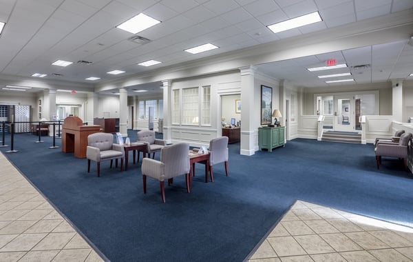 Extensive interior and exterior renovations were completed, including restoring the original millwork and adding new paint, lighting, flooring, and ceilings. Additional office space was built, and the teller lines were extended. The bank remained occupied during the renovations.