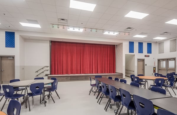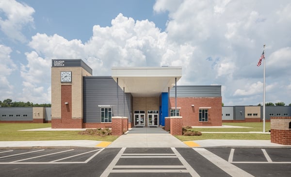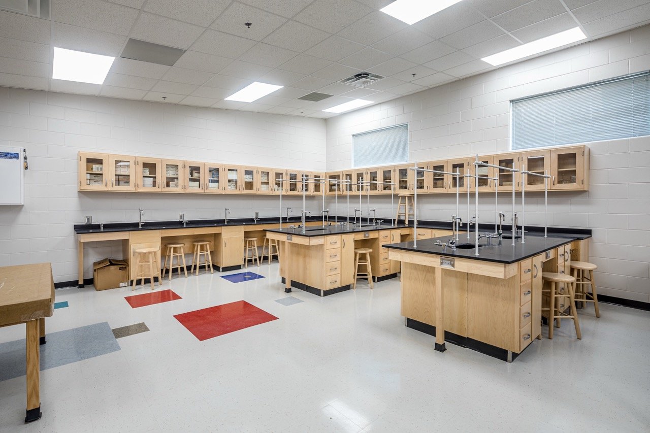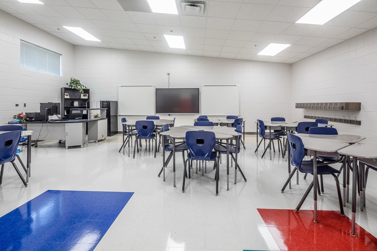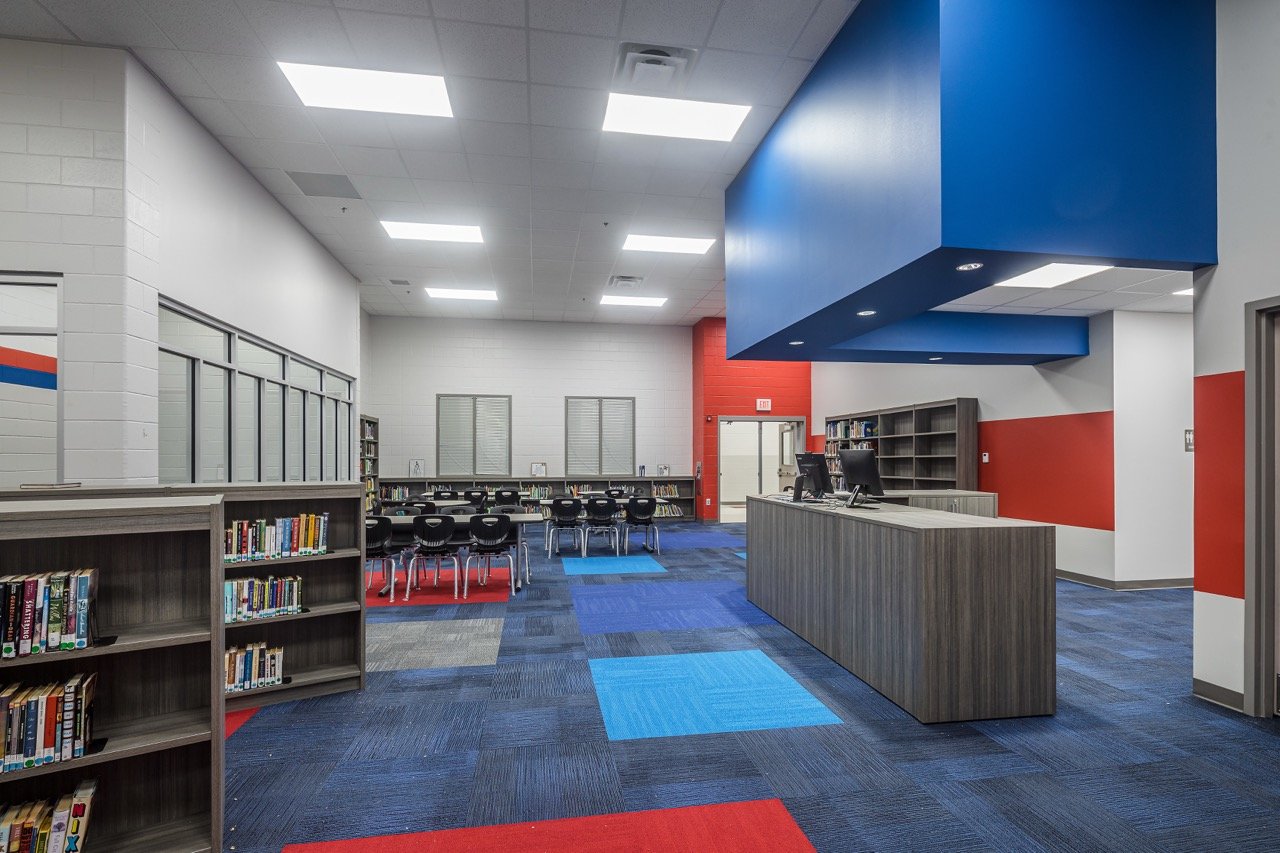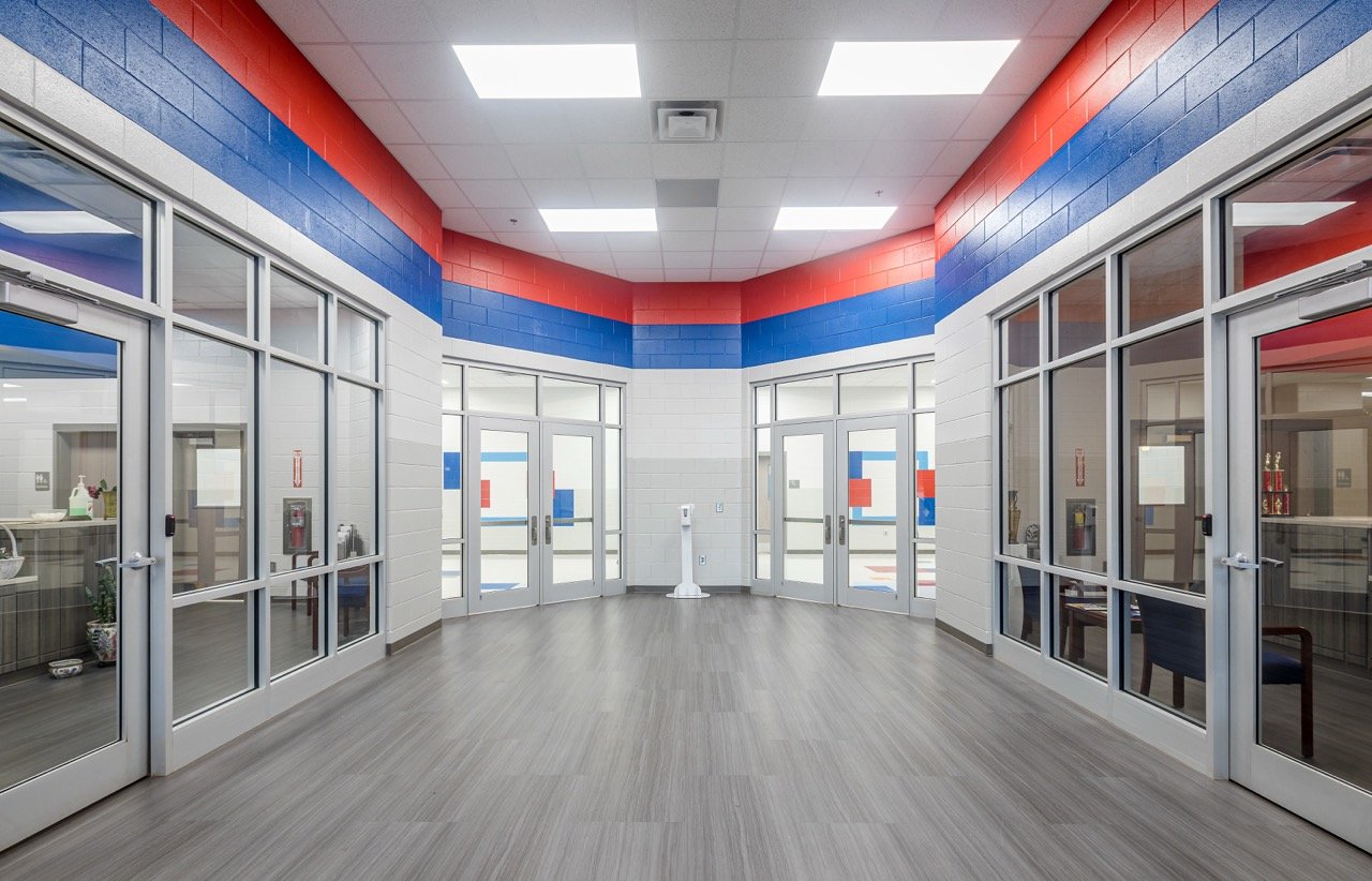 A new K-12 school with separate classroom wings for Elementary, Middle, and High School students. The facility includes separate libraries and gymnasiums and a shared cafeteria connecting the wings, allowing for separation while also providing shared common spaces. Construction took place on an occupied campus.
