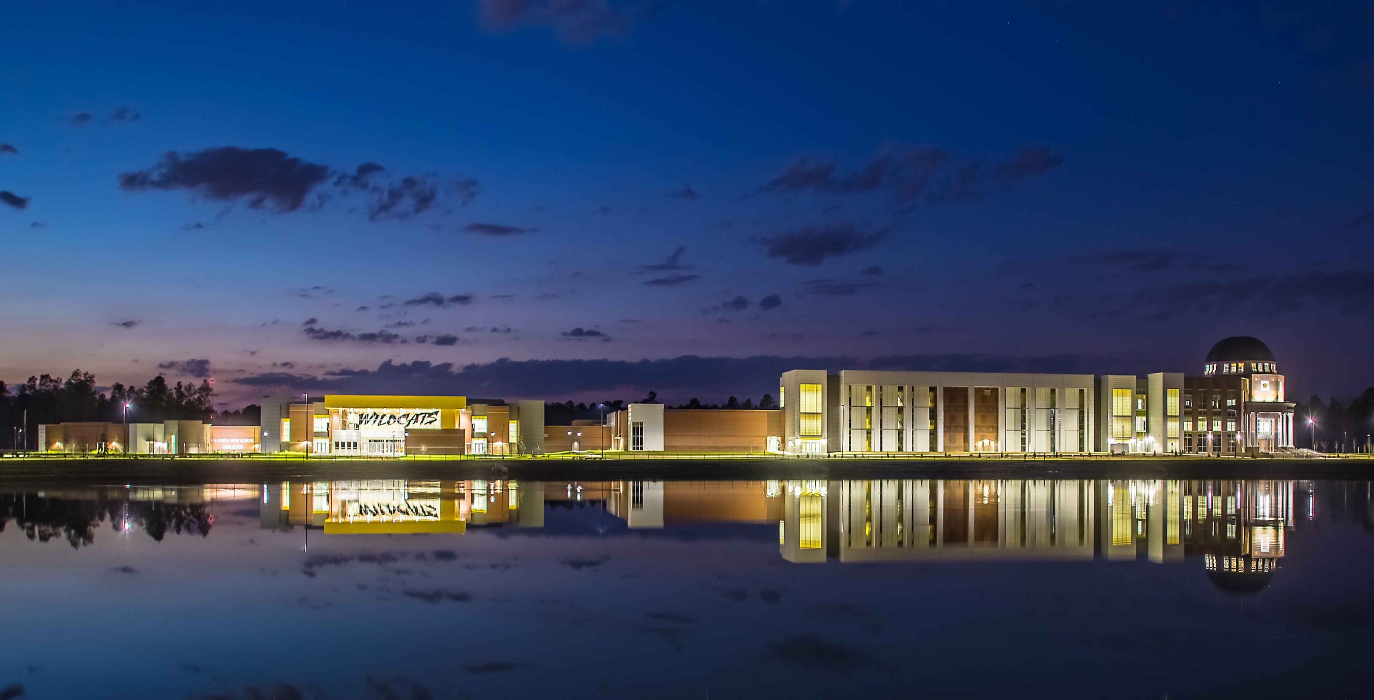 The new Clinch County K-12 School is designed to meet the educational needs of all students, Kindergarten through 12th grade, in Clinch County. The facility features separate classroom wings for Elementary, Middle and High School. Separate libraries and gymnasiums were also constructed for Elementary and Middle/High School students. A shared cafeteria connects the three separate school wings. The facility is designed in a way that provides complete separation for all age groups, while also allowing for shared-use common spaces and administration. Construction took place on an occupied campus.