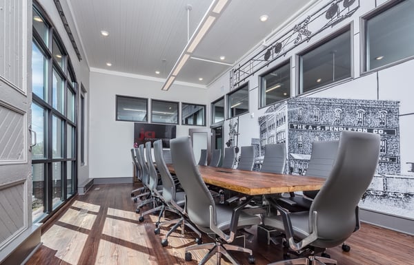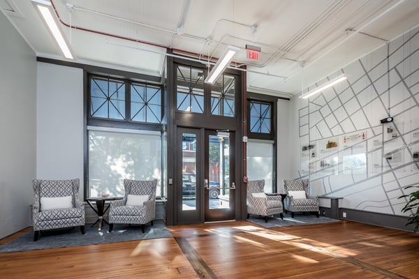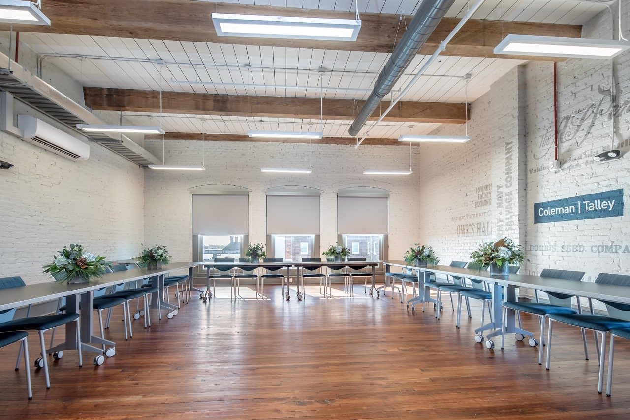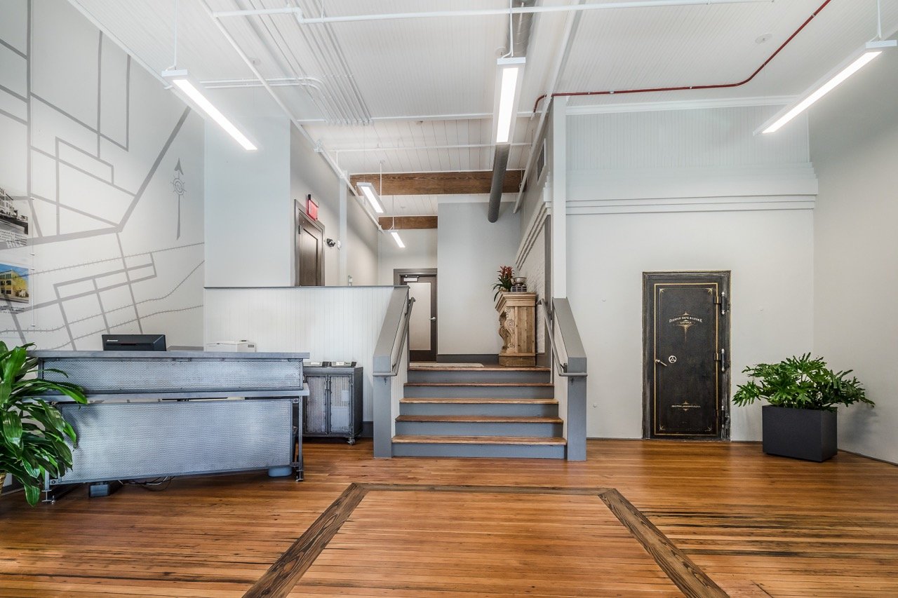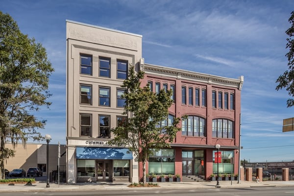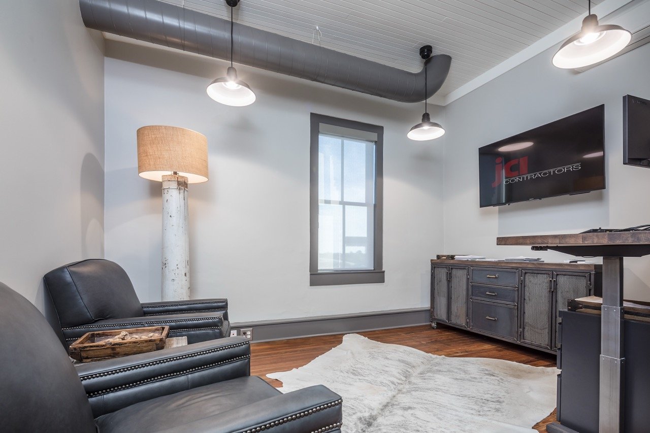 This Historic Renovation project converted two vacant buildings in downtown Valdosta into offices, conference rooms, and meeting space for the Coleman Talley Law Firm. The three and four-story buildings, totaling over 21,000 SF, were originally constructed circa 1900. These buildings housed many tenants in the past but had been largely unoccupied for years. Many historic elements of the buildings including original flooring, windows, storefronts, barn doors and ceiling beams were preserved. New finishes were installed to compliment the buildings’ historic aesthetic.