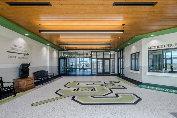 The new Seminole County K-12 School facility is designed to provide a comprehensive learning environment for students in grades K-12. This 188,000 square foot, two-story building will include 84 instructional units, separate elementary and middle/high school media centers, a healthcare lab, competition gymnasium, multi-purpose gymnasium for lower grade levels, weight room, agriculture shop, and a cafeterias for elementary and middle/high school students. To support individualized learning, complete separation of grade levels will be maintained throughout the facility. Construction is taking place near Seminole County Middle/High School’s occupied campus, prompting enhanced measures for security and safety.