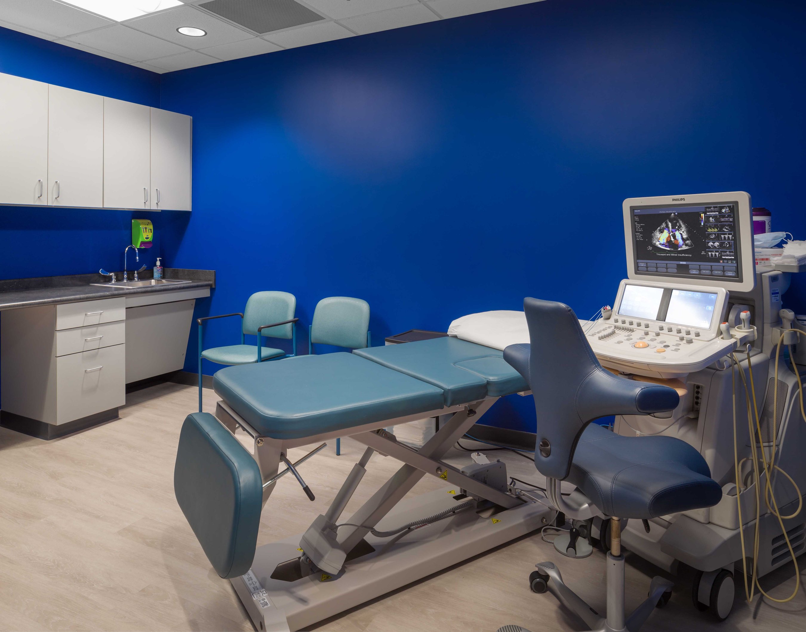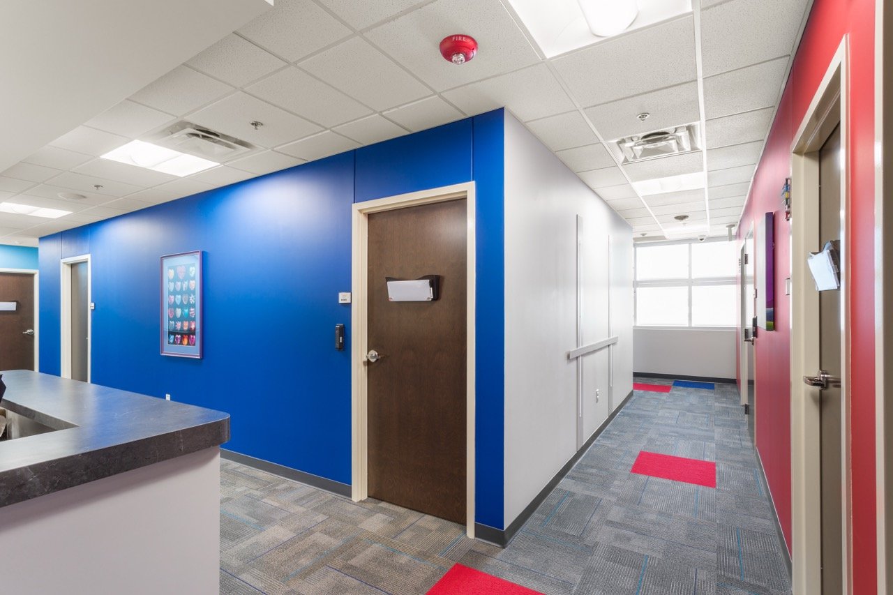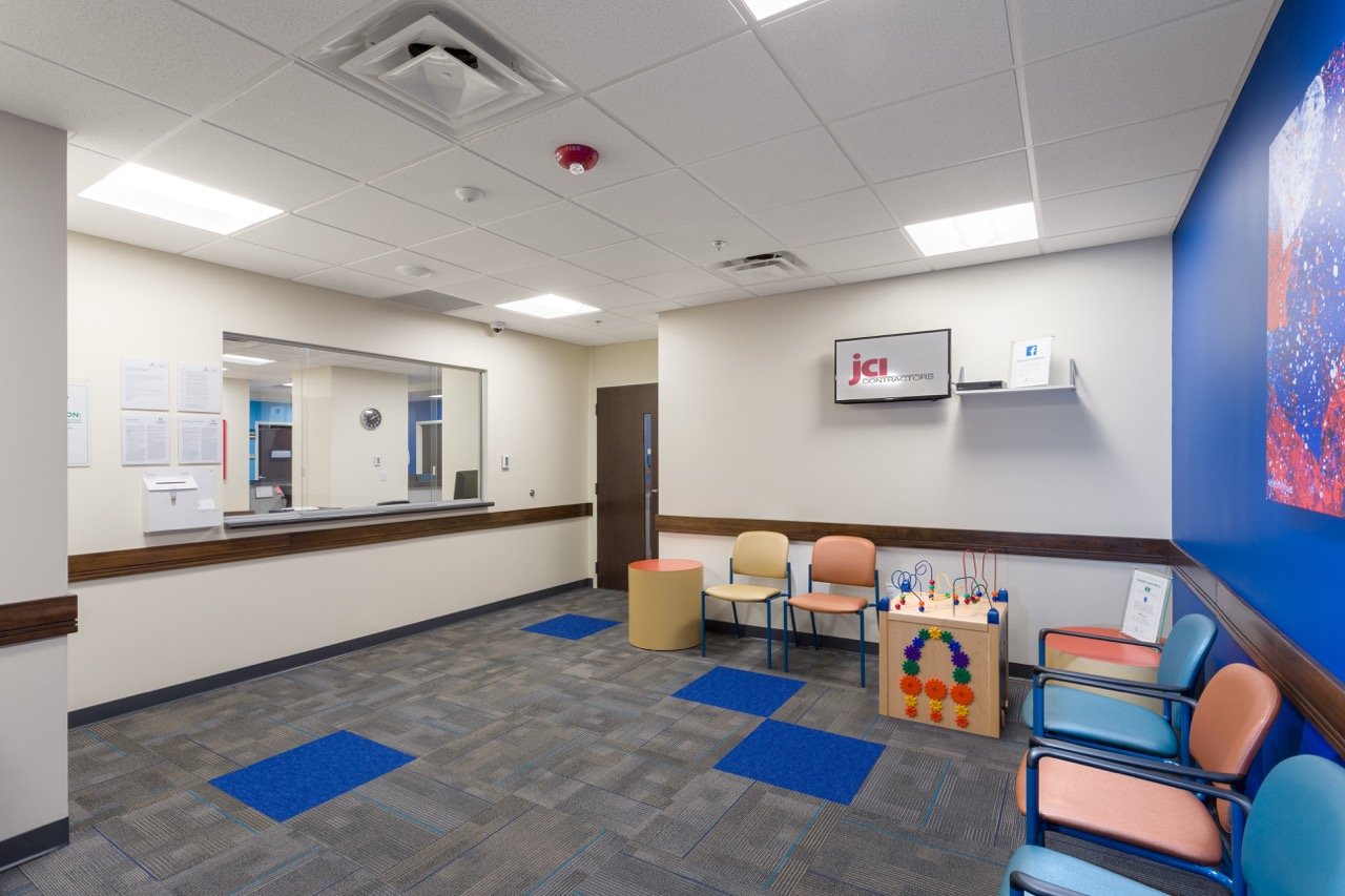A second-floor build-out of an occupied four-story medical facility. The project involved selective demolition to reconfigure spaces, adding new administrative areas, pediatric patient rooms, and an echocardiogram lab. The facility also received new flooring, ceilings, paint, and lighting.