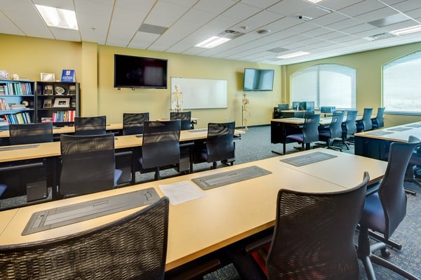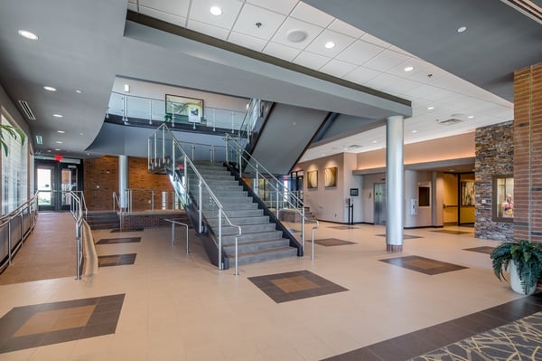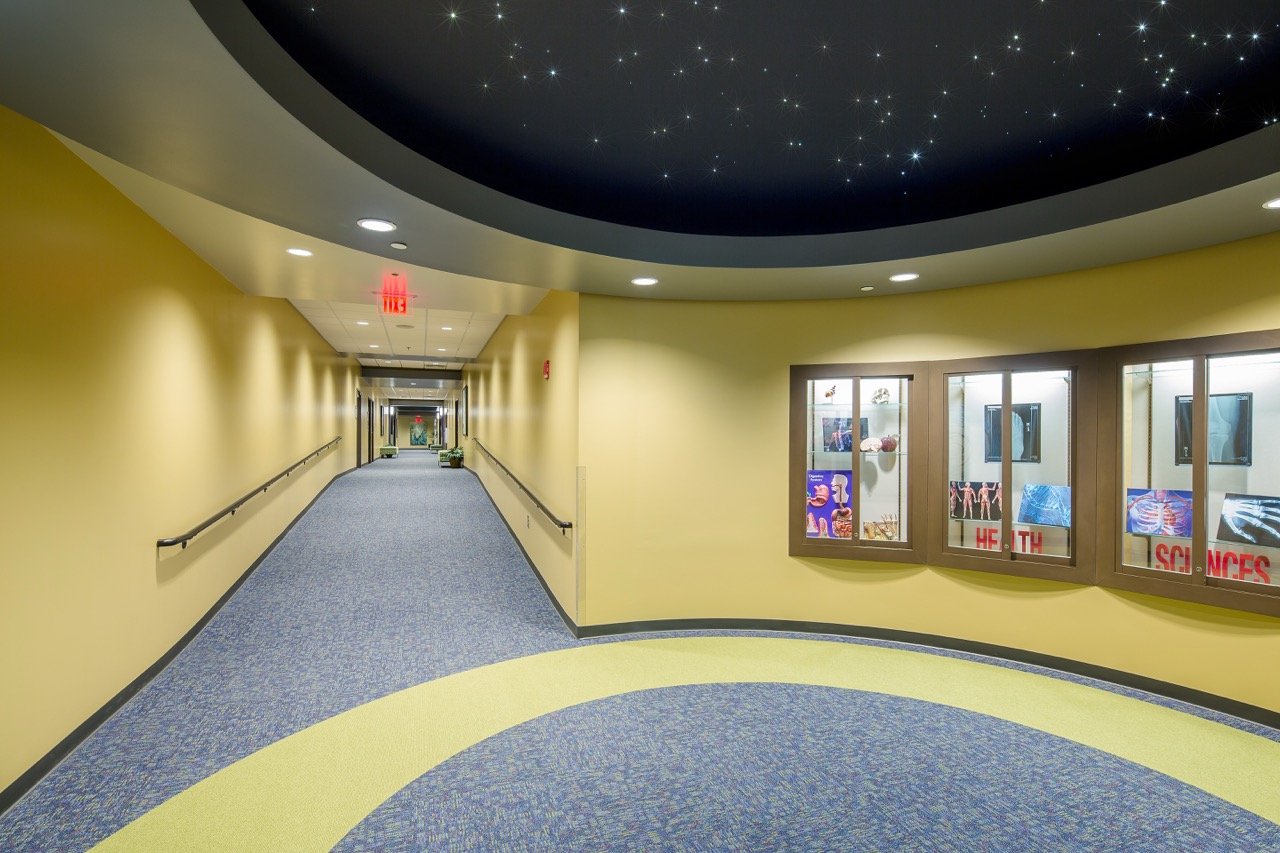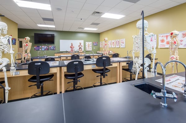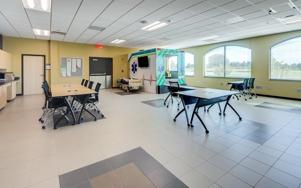 A new Health Sciences classroom facility that includes areas for emergency medical technology, neuromuscular therapy, practical nursing, and radiologic technology. The building was constructed adjacent to existing buildings on an occupied campus, with precautions taken to avoid interruptions.