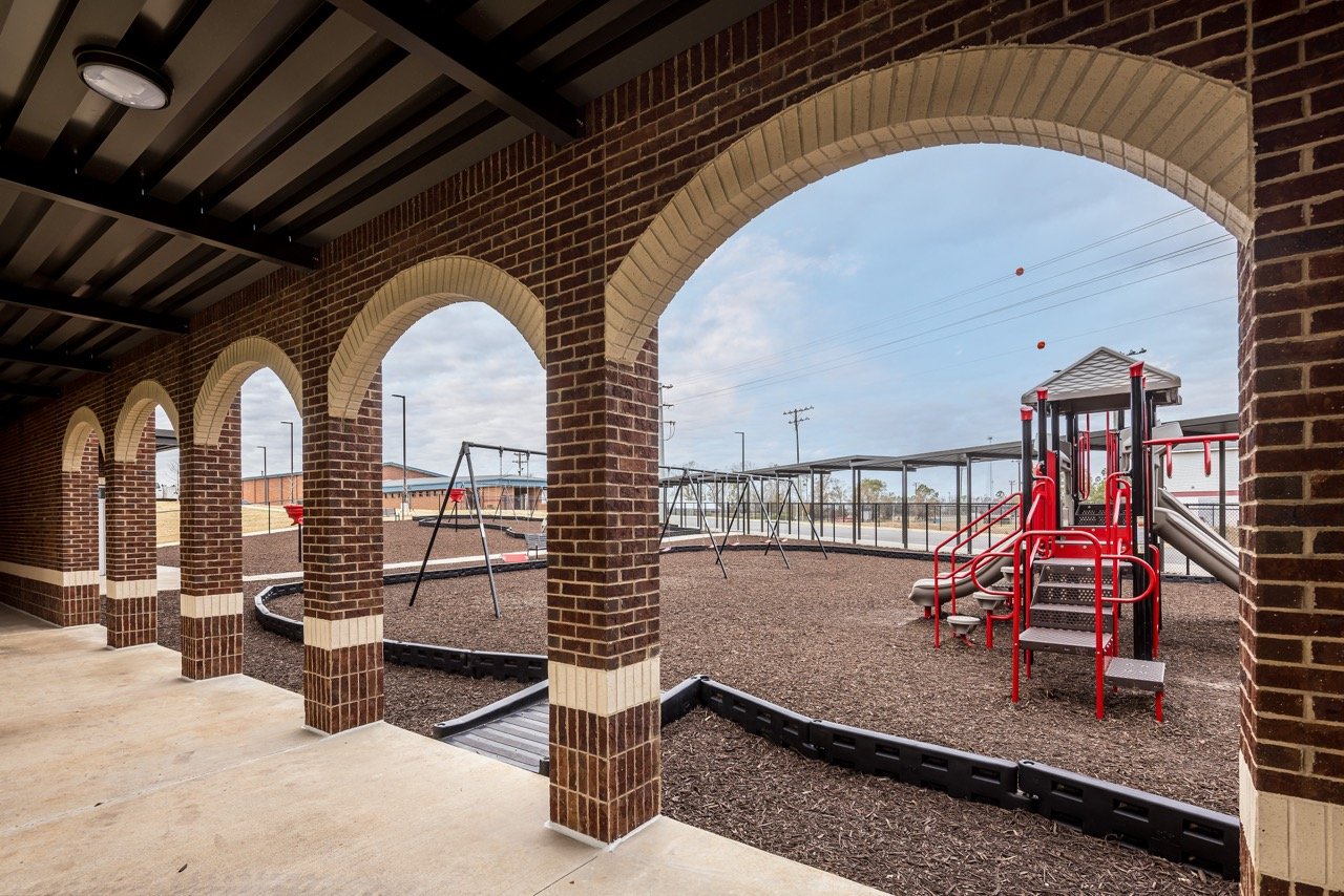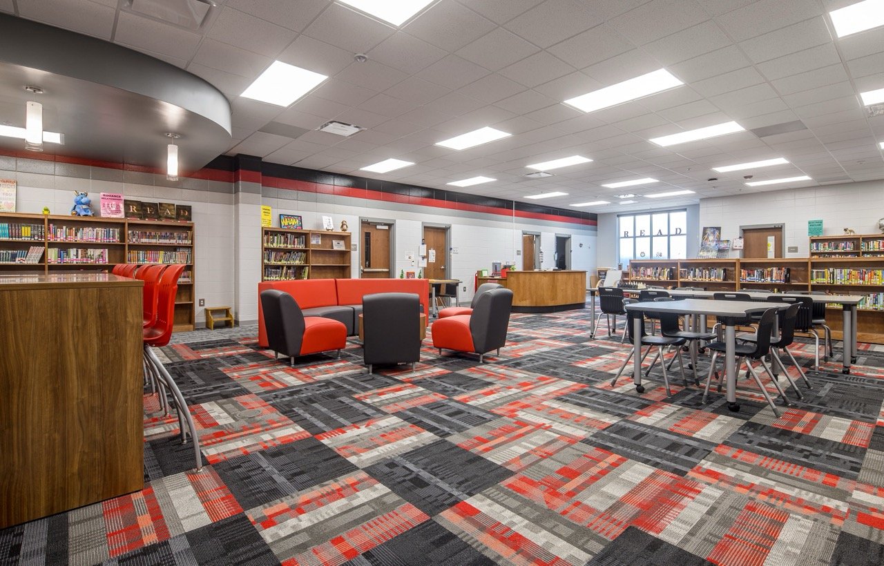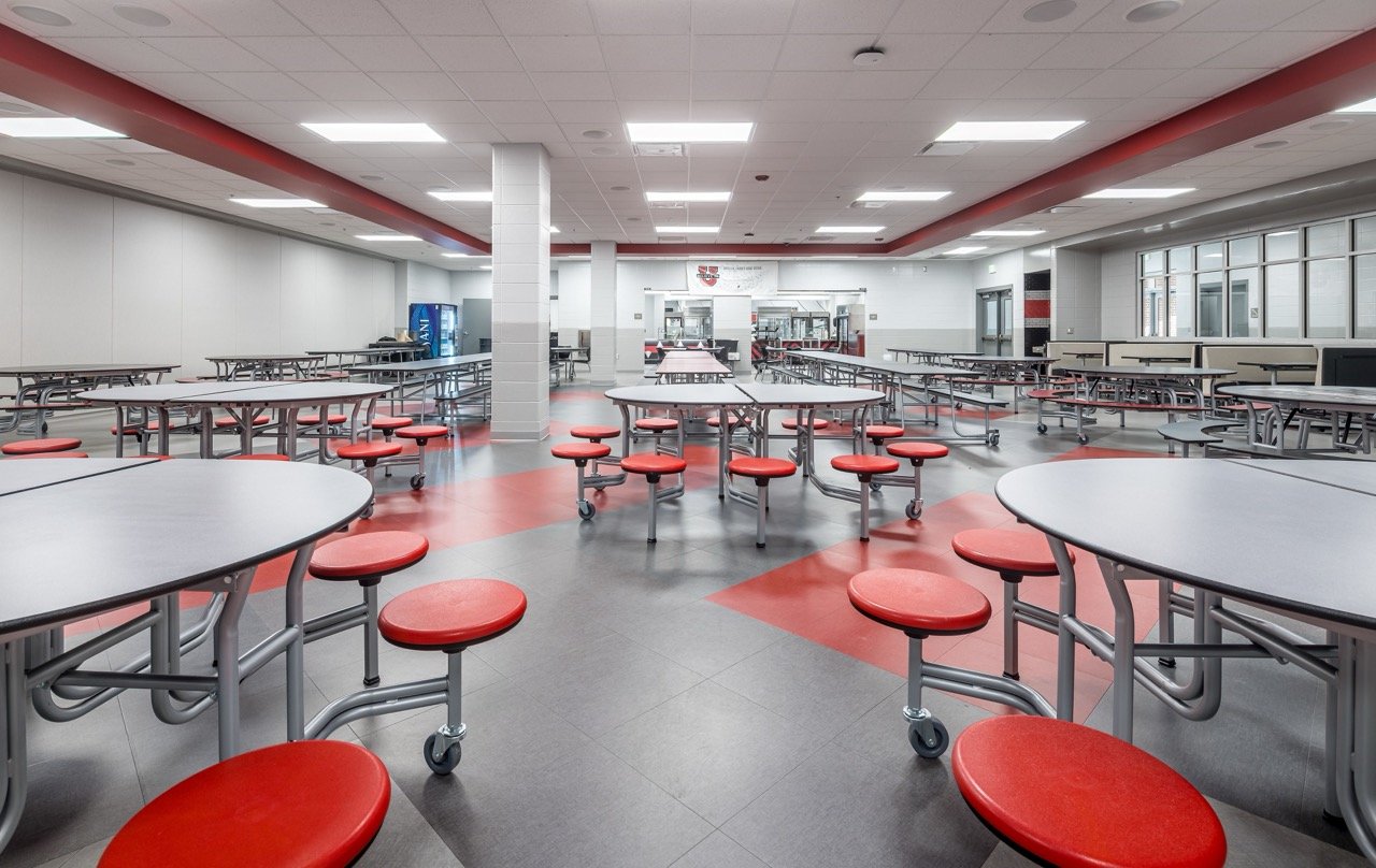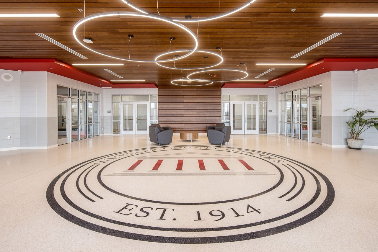 A new school designed to accommodate all K-12 students. Before construction, a transportation facility, practice gym, and classroom wing were demolished. The project took place in close proximity to existing buildings on an occupied campus, and the remaining buildings were demolished once the new facility was completed.